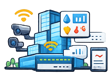 서버실·데이터센터 설비 랙·패널 설치, 케이블링, 온습도 감시 시스템 | IoT/스마트빌딩 센서 기반 원격 모니터링, BMS(Building Management System) 연계 |